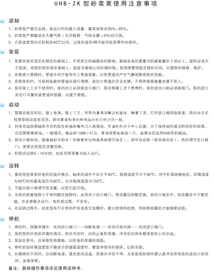 UHB-ZK型系列料漿泵為懸臂式單級、單吸離心泵,其過流部件采用鋼襯超高分子量聚乙烯制造,具有較強(qiáng)的耐腐蝕性、卓越的耐磨性、抗蠕變性(耐環(huán)境應(yīng)力開裂),同時(shí)采用金屬基體結(jié)構(gòu),提高了產(chǎn)品承壓能力。