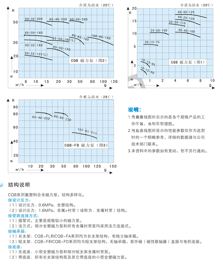 由于泵的過流部分選用“氟塑料合金”制造??蛇B續(xù)輸送任意濃度的酸、堿、強氧化劑等腐蝕介質(zhì)而毫不受損。