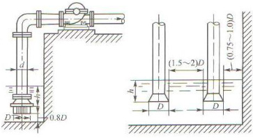7、為減小進(jìn)水管進(jìn)口處的水頭損失和改善吸水井的水流狀態(tài),進(jìn)水管進(jìn)口通常采用喇叭口形式。當(dāng)水泵采用自灌式工作或真空設(shè)備引水時(shí),不設(shè)底閥;水泵采用壓水管壓力水灌泵時(shí),應(yīng)設(shè)底閥。如水中有較大的懸游雜質(zhì)時(shí),喇叭口外面還需加設(shè)濾網(wǎng),以防水中雜物進(jìn)入泵內(nèi)。