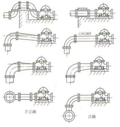 進(jìn)水管路的基本要求:不漏氣、不集氣、不吸氣、管路短、管件少;有正確的吸水條件;便于安裝、運(yùn)行管理